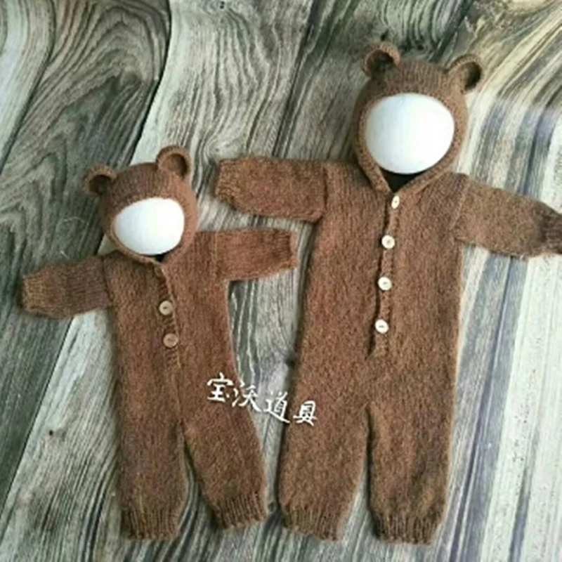 Mohair outfit Pajamas baby romper with feet Bear hat Newborn onesie and bear hat Newborn size photo