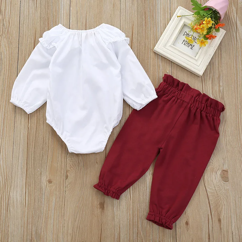 2PCS Newborn Infant Baby Girls Ruffle Bodysuit Romper Tops Pants Outfits Set Clothes Autumn Winter