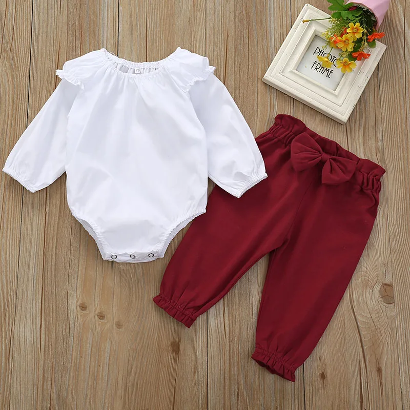 BEST 2PCS Newborn Infant Baby Girls Ruffle Bodysuit Romper Tops Pants Outfits Set Clothes Autumn Winter
