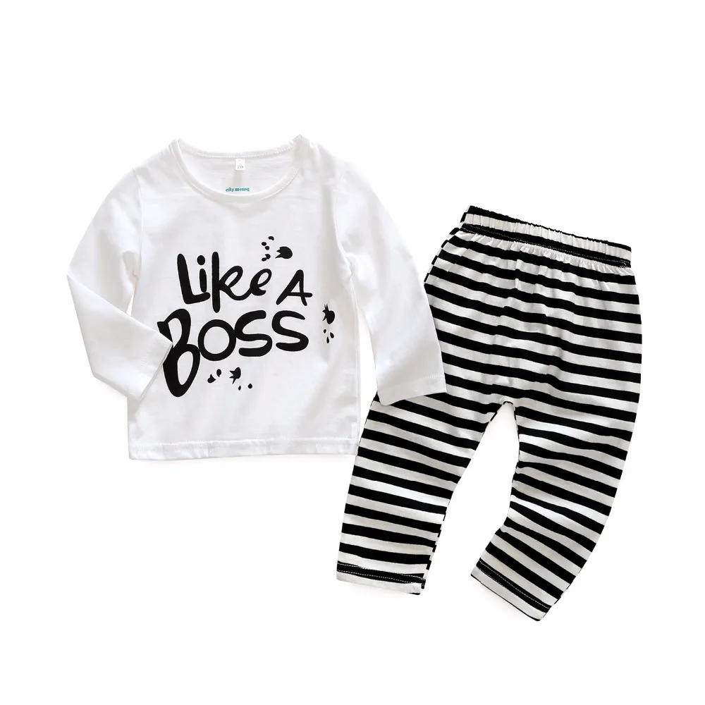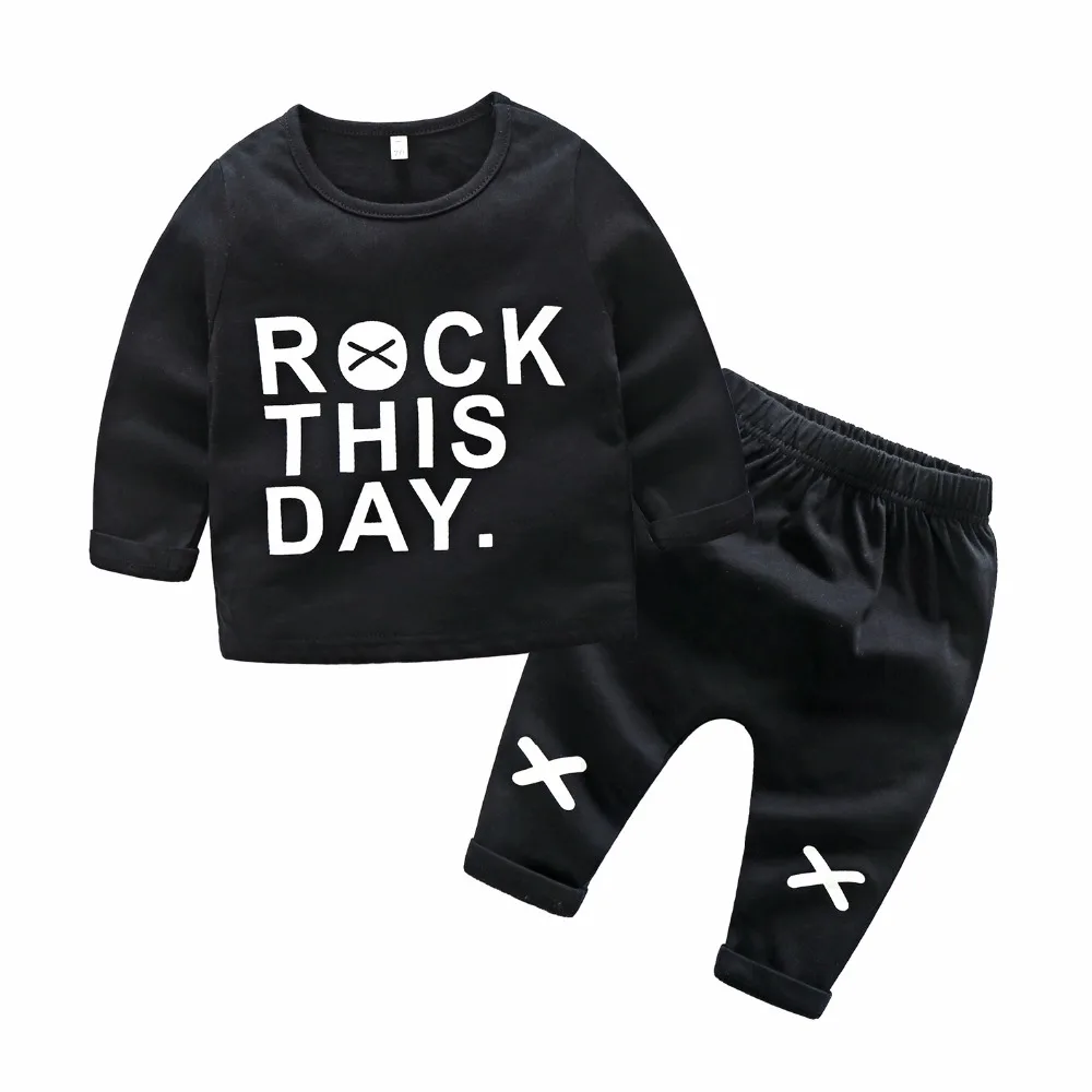 Review Top Autumn baby boys girls cartoon letter cotton t shirts +pant set cute infant homewear fashion kids c