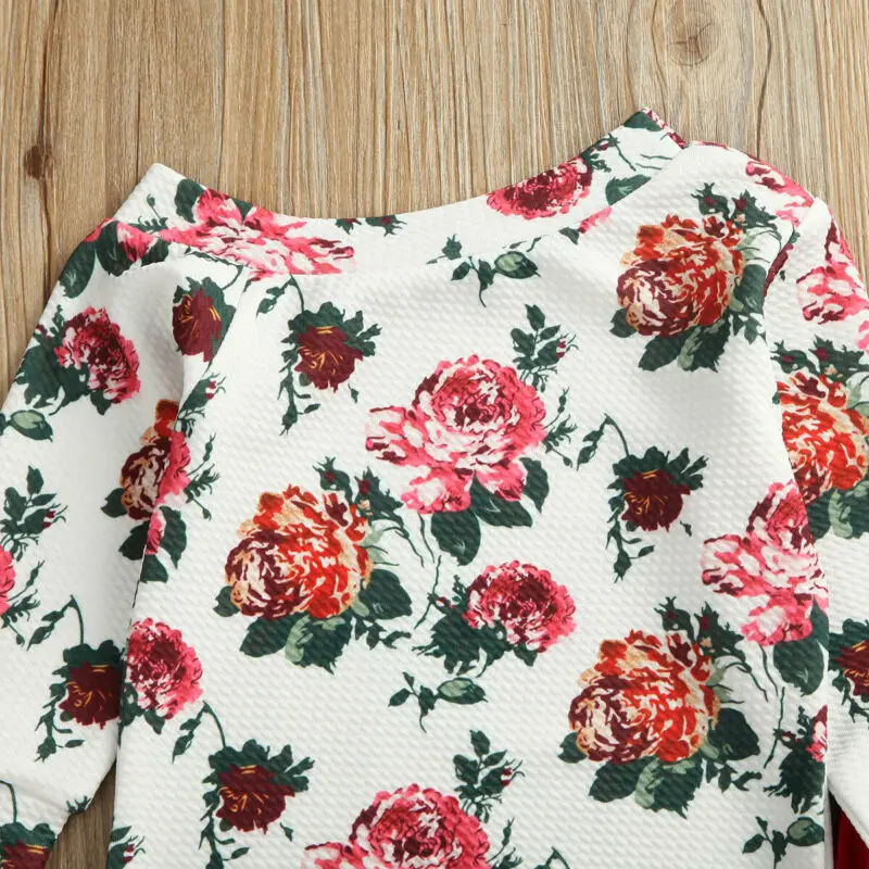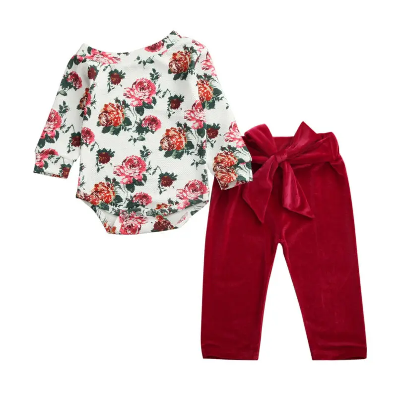 BEST QUALITY 0-24M infant baby girl clothes suit off shoulder long sleeve floral jumpsuit + comfortable velvet p