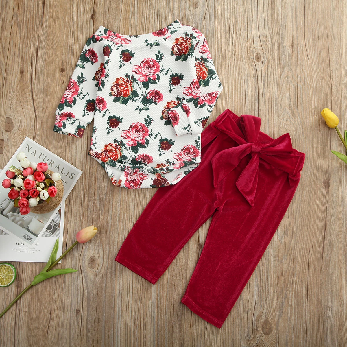 0-24M infant baby girl clothes suit off shoulder long sleeve floral jumpsuit + comfortable velvet p