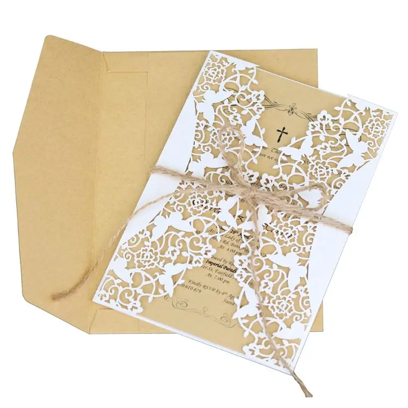 BEST QUALITY 10pcs/set Laser Cut Hollow Wedding invitations Cards Lace Hemp Rope Invite Envelopes Kits For Engag