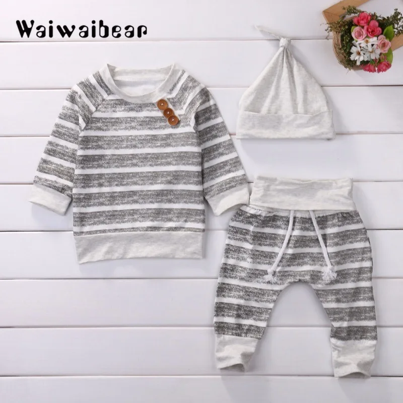 3Pcs/Set ! Baby Clothing Sets New Autumn Baby Boys Clothes Infant Baby Striped Tops T-shirt+Pants L
