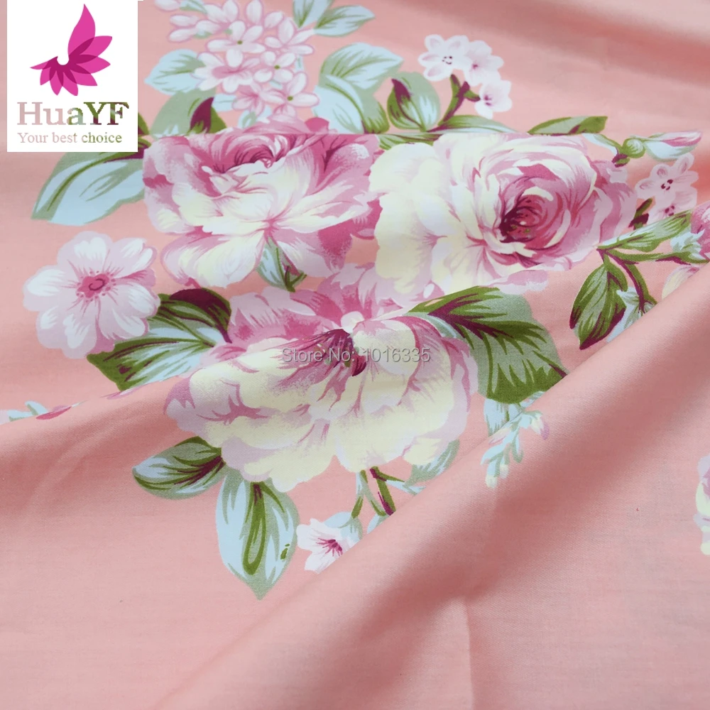 Hot Sale Pink Rose Print Twill Cotton Fabric DIY Handmade Sewing Patchwork Baby Cloth Bedding Texti