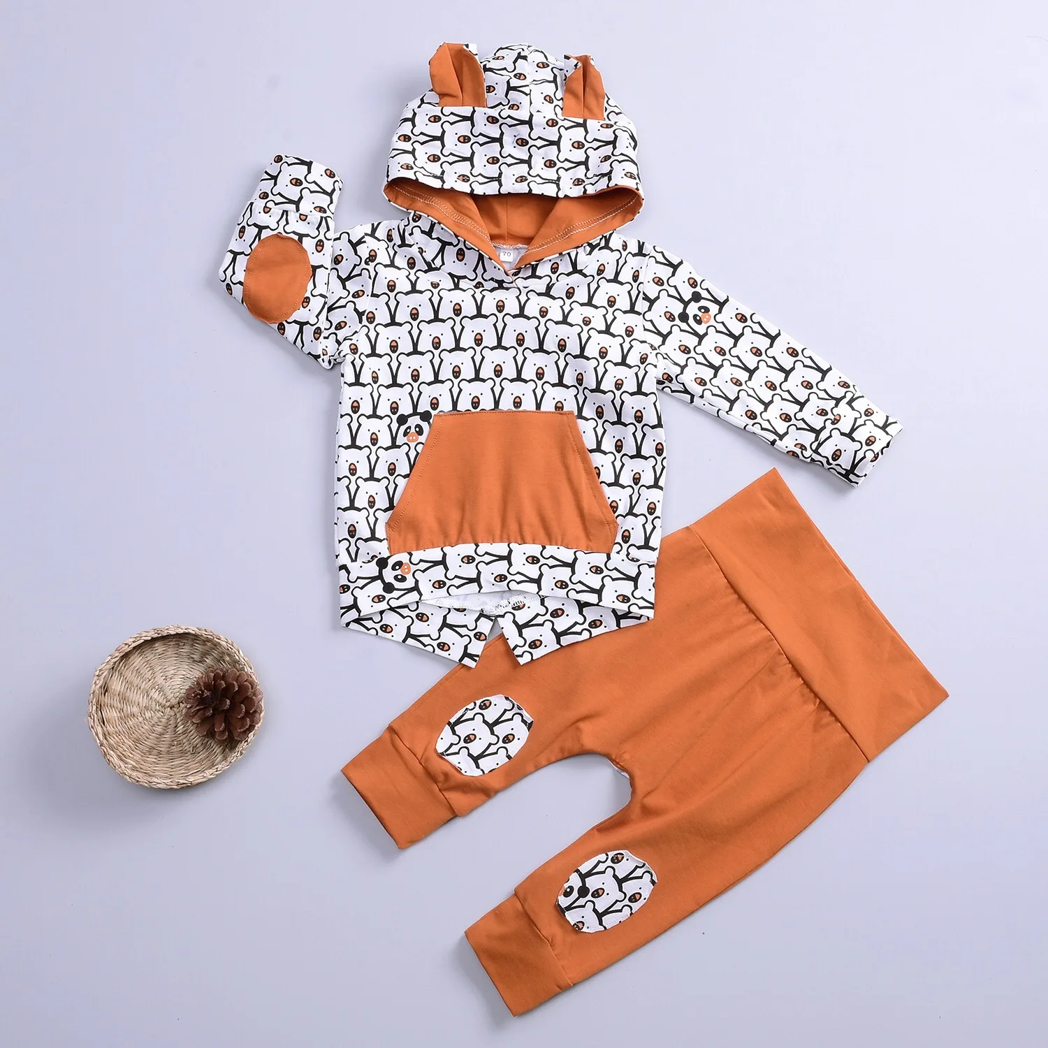 Toddler Kids Baby Girls Boy Autumn Clothes Long Sleeve Animal Bear Print Hoodies+Pants 2Pcs Outfits