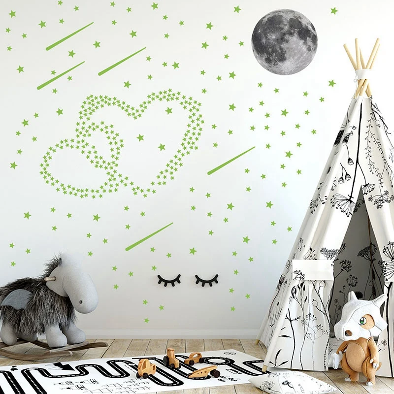 3D 494PCS Stars Glow in the Dark Wall Stickers Luminous Fluorescent Wall Stickers for Kids Baby Roo