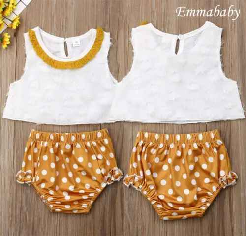 Baby Girl Clothes Summer Suit White Tassel Shirt Wave Point Lace Shorts Suit Outfit Clothes Set