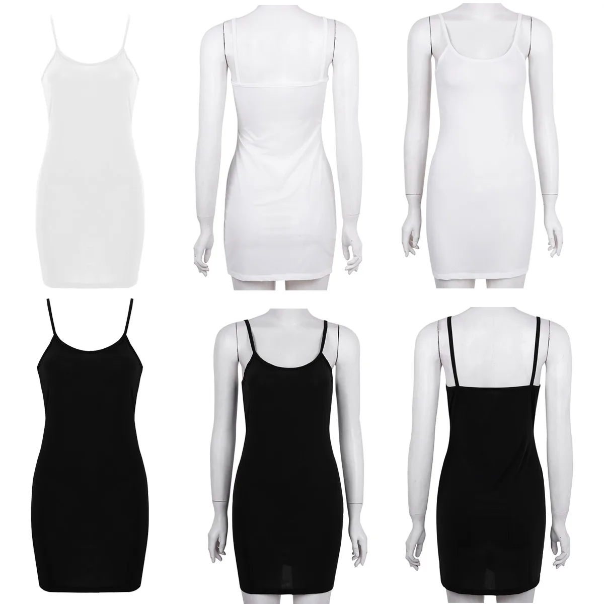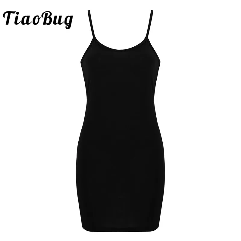 ORIGINAL TiaoBug Women Sheer Lingerie Spaghetti Straps Lightweight Low Cut Full Slip Solid Color Hot Sexy Ba